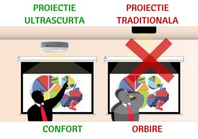 - Nu se generează umbre pe tablă datorită videoproiectorului cu distanță de proiecție ultrascurtă