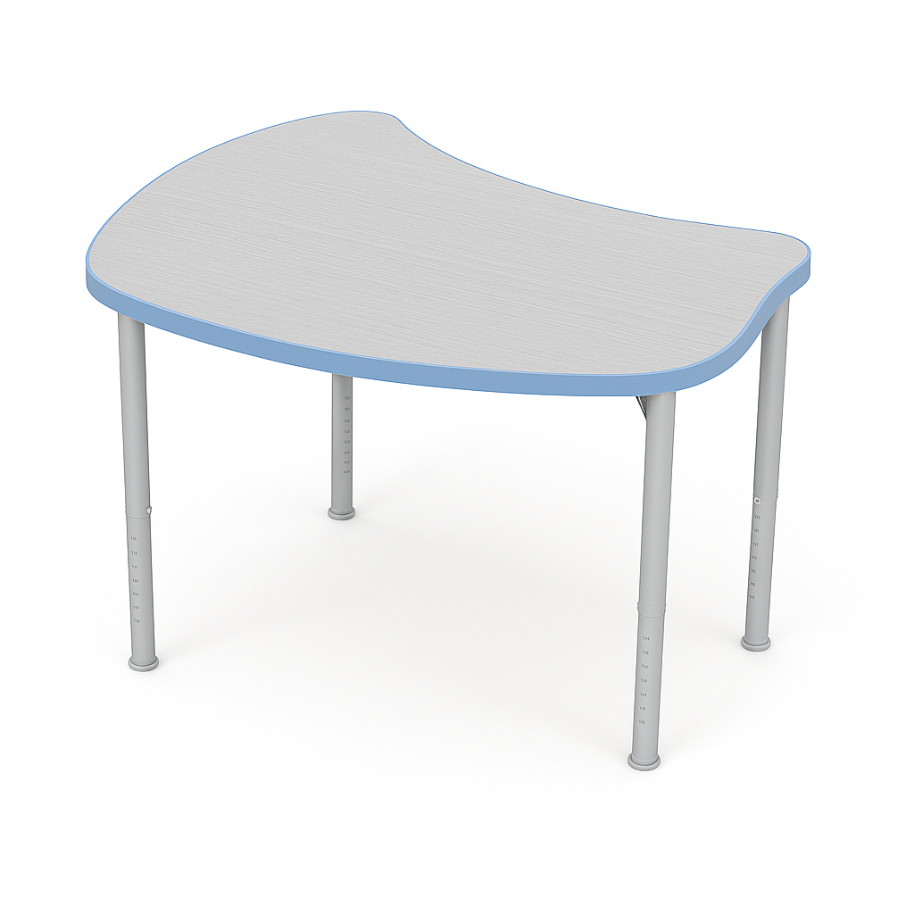 Blatul cu dimensiuni 818 × 655 mm oferă suficient spațiu pentru caiete, manuale, laptopuri, tablete sau truse STEM. Forma rotunjită și distribuția inteligentă a spațiului permit o poziție naturală și reduc necesitatea mișcărilor incomode.