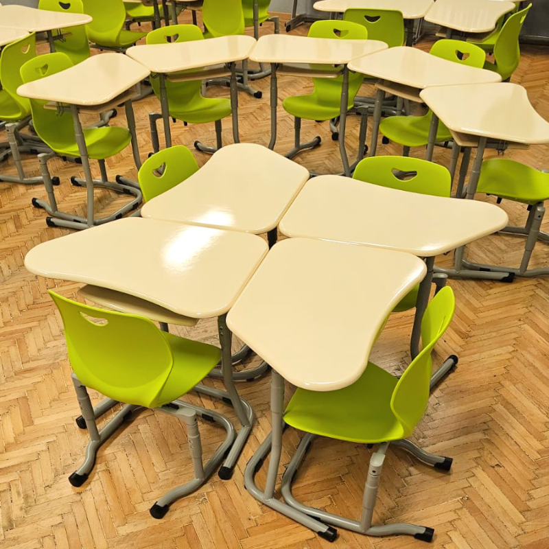 - designul original optimizează inclusiv asezarea in spatii mici, 20 de elevi putând fi organizati si într-o sală relativ mică, de 5x6m