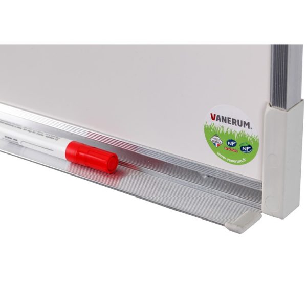 Are rama de aluminiu cu colturi speciale din material plastic, În spatele suprafetei albe de scris de află o placă suport din MDF de minim 9mm grosime iar în spatele acestei plăci este lipită o foaie de otel zincat pentru a preveni curbarea tablei in timp.